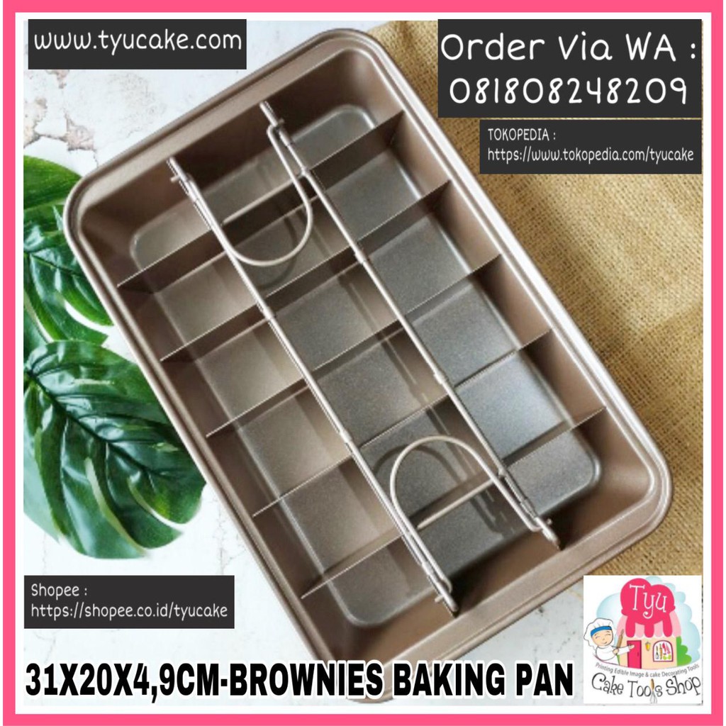 Harga Per PcsBrownies Baking Pan+SekatBahan: High Carbon Steel , Anti Gores & Anti LengketUkuran: +/- 31 x 20 x4.9cmUkuran Brownies : +/- 4.5cm x 6.5cmBerat : +/- 810gr/pcsTebal: 0.7mmWarna: Dark Gold========================WAJIB DIBACA:========================- Setiap Hari Senin Toko LIBUR (Tidak ada Pengiriman) Hari Selasa buka kembali.- Pengiriman perhari nya..Via JNE :Hari Selasa-Jumat : transaksi DONE sebelum jam 4soreHari Sabtu : transaksi DONE sebelum jam 12 siangHari Minggu : Agen JNE dan Wahana TUTUP, transaksi DONE sebelum jam 13.00, di titip pengiriman di hari Senin)Via WAHANA :Agen Wahana beroperasional Hari Selasa-Sabtu, semua transaksi DONE sebelum jam 12 siang, ikut pengiriman hari itu juga.- Jam Operasional Toko (Store Operational Hour):Selasa - Jumat :Pk. 08.00wib - Pk. 19.00wib(khusus hari Jumat, jam 12.00 wib s/d jam 13.30 toko kami tutup dulu ya, untuk Sholat Jumat)Sabtu & Minggu :Pk. 08.00wib - Pk. 15.00wibHari Senin : TUTUPHari Libur(tanggalan merah) di luar hari minggu : TUTUPSemua akses pemesanan akan di non aktifkan di luar jam operasional kami.========================Untuk barang yang mudah pecah/rusak/peyot, sebelum kirim, kami pastikan sudah packing barang tersebut semaksimal mungkin(packing maksimal kami yaitu dengan plastik bubble dan koran/kertas di pinggiran) dan di paket di tempel dengan stiker "FRAGILE".Kami TIDAK AKAN MENGGANTI barang yang nantinya jadi pecah/rusak/peyot karena kesalahan dari ekspedisi/JNE/WAHANA ataupun kami TIDAK AKAN membantu untuk proses komplain ke ekspedisi/JNE/WAHANA nya ya karena aslinya ekspedisi/JNE/WAHANA tidak akan mau terima paket dengan barang pecahbelah/mudah rusak/mudah peyot tanpa asuransi dan packing kayu.========================Bila sudah klik beli bearti sudah mengerti aturan