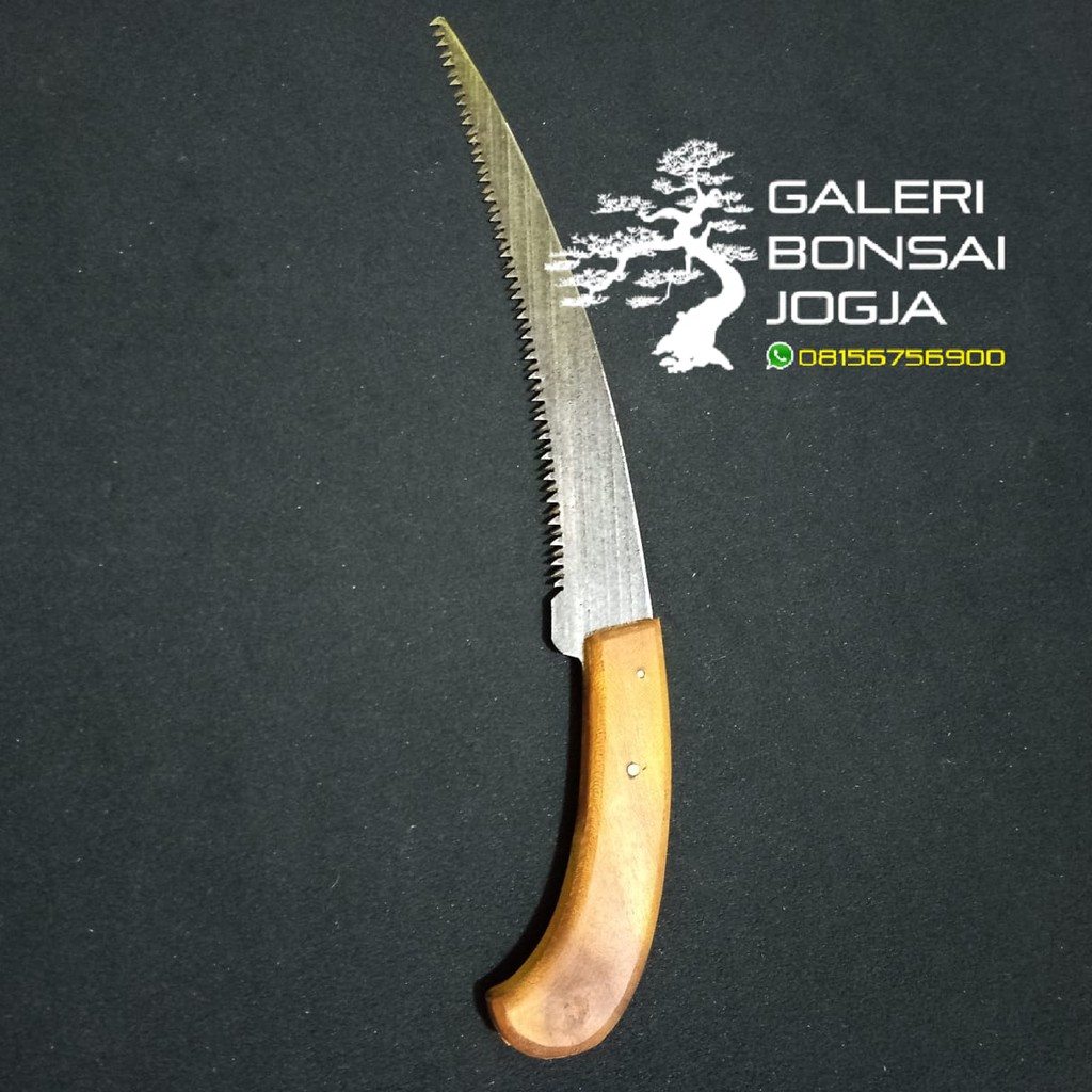 Agen Perlengkapan di Kabupaten Dompu Alat Bonsai Gergaji Lokal Lengkung Gagang Kayu dari Galeri Bonsai Jogja Kab. Sleman