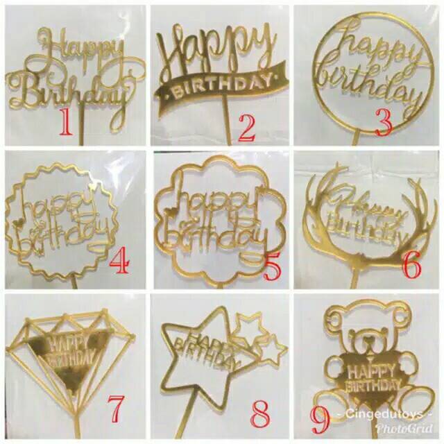 - Cake Topper Happy Birthday Acrylic/ Akrilik- Warna Gold, Biru, Merah, Ungu- Ukuran -/+ 10 x 10cm- Motif : Random#Perlengkapanulangtahun #Caketopper #Caketopperhappybirthday #Caketopperhapppybirthdayak