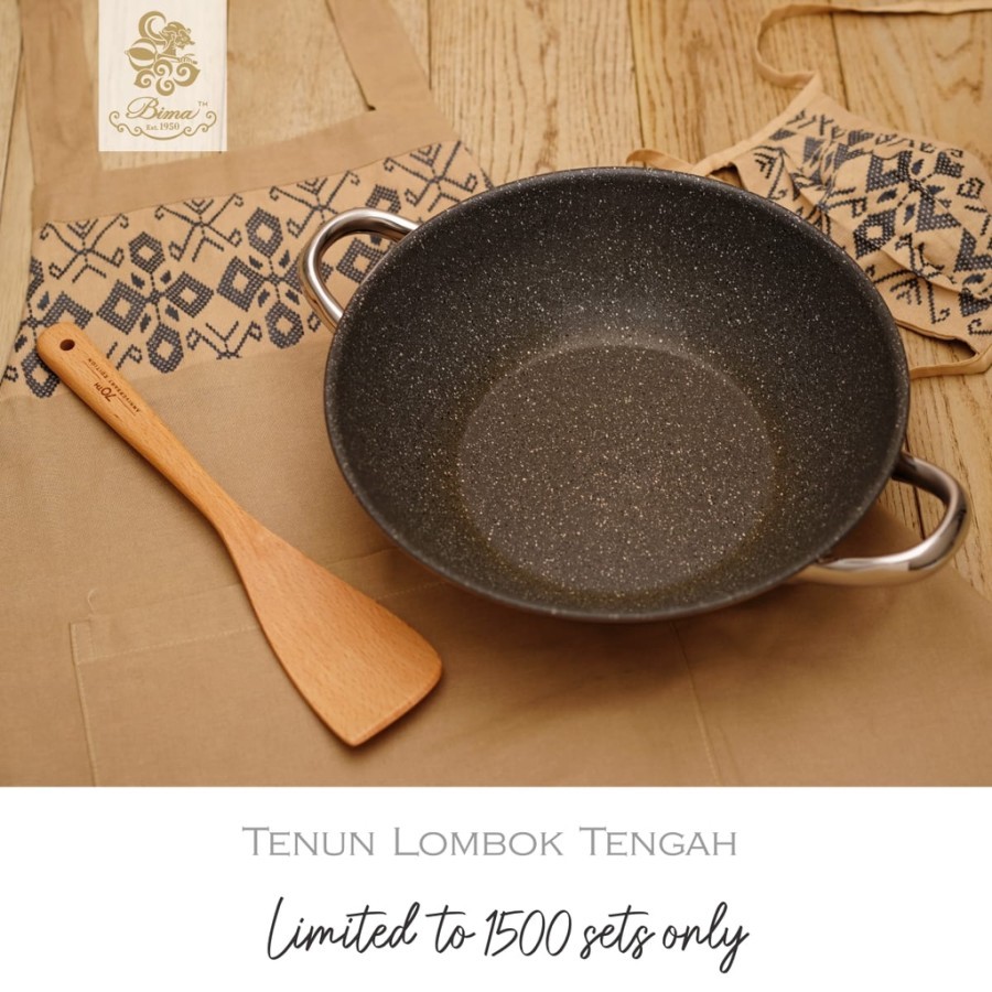 BIMA Origin Non Stick Wok Kuali 28 cm Free Gifts LIMITED EDITIONBima Wajan 28 cm Origin Non Stick Set Lombok Tengah EditionBima Wok Origin Non StickKeunggulan- Anti Lengket- Dilapis dengan STONEFORCE COATING UK Technology- Lapisan tidak bisa terkelupas- FOOD GRADE- PFOA FREE, NO LEAD, NO CARDIUM > BEBAS RACUN menjadi aman dan sehat- Terbuat dari PREMIUM Stainless bagian bawahnya- Bisa untuk semua jenis kompor: Gas, induksi, listrik, HalogenSet Termasuk :1 Wok Origin NS 28 cm1 Premium Wooden Spatula1 Apron dan Masker Lombok Tenun1 Recipes Booklet by Chef Vindex Te