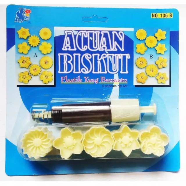 5 in 1 Cetakan Motif Bunga / Acuan Biskuit No. 135BBahan plastik halus dan tebalBuatan Malaysia merk Sin LianUntuk motif 135A : https://shopee.co.id/product/25567967/6233174459?smtt=0.0.9Panjang cetakan 16cmDimensi cetakan : 3cm x 4cm x 2cmKetebalan kue dapat disesuaikan dgn keinginan