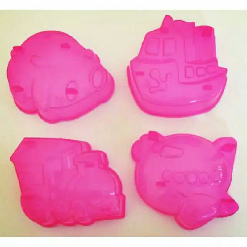 cetakan nasi bento bolu piding bahan plastik bentuk transportasi ukuran sekitr 5cm1 set isi 4