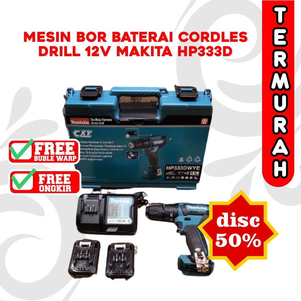 Terdapat situs online store untuk membeli Mesin Bor Baterai / Cordless Drill 12v Makita / Hp333d / Mesin Bor Besi Kayu Beton / Termurah untuk Anda. Mereka menjual hampir seluruh yang kiranya dibutuhkan oleh Saudara. Moral terpenting dari belanja online adalah Ente dapat membandingkan harga Perlengkapan di sejumlah situs online store. Dengan metode ini, kami yakin Agan mampu memperoleh harga diskon. Perkakas Online menjual bermacam2 produk Perlengkapan dengan ongkos bersaing. Kalian berpotensi membeli Mesin Bor Baterai / Cordless Drill 12v Makita / Hp333d / Mesin Bor Besi Kayu Beton / Termurah tanpa meninggalkan kesenangan rumah Engkau.