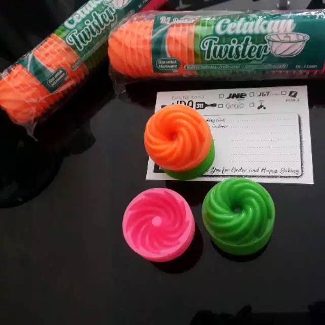 Cetakan Puding Ulir TwisterUkuran dimensi- Diameter tengah 5 Cm- Tinggi luar 2.3 Cm- Harga untuk 1 lusin cetakan- Aman untuk di kukus- Bisa untuk microwave- Dapat digunakan untuk pembuatan puding, agar-agar, jelly ,coklat , bolu kukus, putu ayu.- Terbuat dari bahan plastik murni dan pewarna plastik organik.- Warna acak - Pesanan akan dikirim sesuai stok barang yang ters