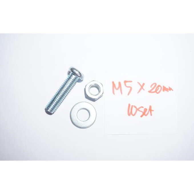 bismillahHarga terdiri dari :Baut M5 4x20mm 10 Pcs.Mur 5 10 Pcs.Ring 5 10 Pcs.bila kurang paham, silahkan tanyakan kepada
