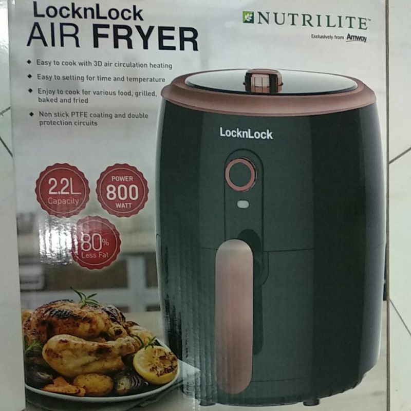 BARU DATANG LAGI... CUMA 3PCS. NO MORE. BURUAN....Lock n Lock Air Fryer 2.2L 800WMemasak lebih sehat tanpa minyak.Cepat dan Praktis.Hemat listrik.360 Hot Air Circulating HeatingSpesifikasi:Watt : 800WCapacity : 2.2 LMaterial : PP + PC + PBTSize : 26 x 20.2 x 27.6 cmVoltage : 220 - 240VWarna : Hitam dengan List G