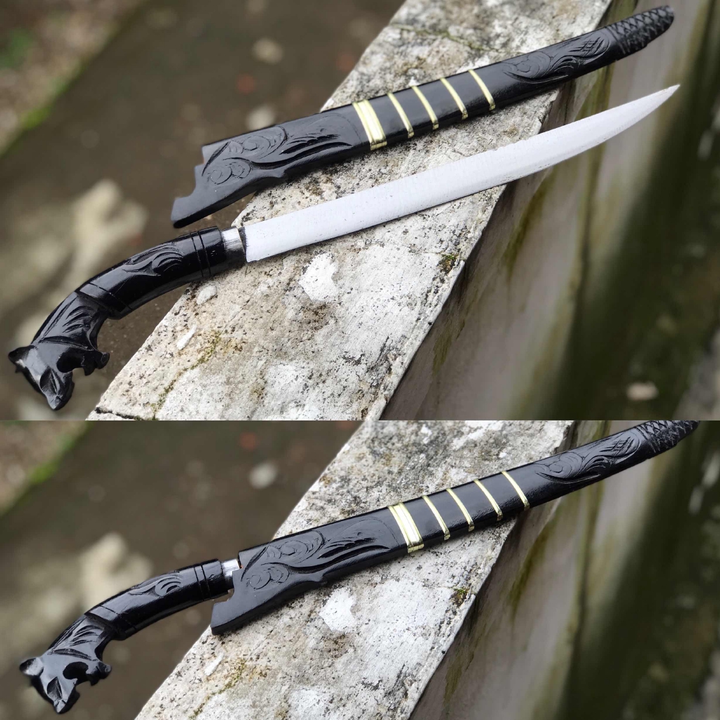 Panjang total : 48 cmPanjang Bilah : 29 cmPanjang Handle : 14,5 cmL bilah : 2,5 cm T bilah : 2 mmBahan Bilah : baja stripKetajaman : sudah tajam Bahan Sarung : kayu rasa mala motif ukiran simpai Bahan Handel : kayu rasa malaMohon tanyakan dulu ketersediaan produk sebelum orderdilarang menyalah gunakan produkhappy sho