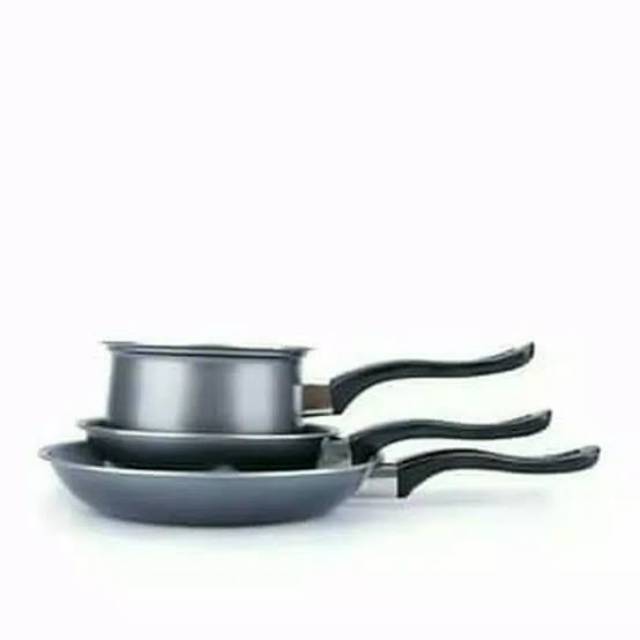 KUKINA Cookware Sets Milkpan 14cm belly+FP 18cm+FP 23cm KUKINA Cookware Sets merupakan satu set alat masak yang terdiri dari 1 buah wajan milkpan 14cm, 1 buah frypan 18cm dan 1 buah frypan 23cm (terdapat 3 pcs dalam set ini). Terbuat dari lapisan anti lengket khas Maspion, gagang anti panas, dan terbuat dari alumunium yang dapat mendistribusikan panas dengan baik dan merata. Peralatan masak ini juga memiliki pegangan yang kuat sehingga Anda dapat memasak dengan aman dan nyamanDetail:- Satu set alat masak- Terdiri dari 1 buah wajan milkpan 14cm, 1 buah frypan 18cm dan 1 buah frypan 23cm- Terbuat dari lapisan anti lengket- Memiliki gagang yang kua