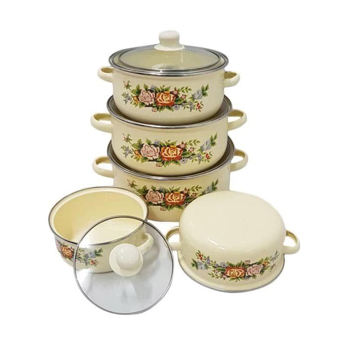 Paling Murah Perlengkapan di Kabupaten Sumba Barat Daya Panci Set Enamel Reoona 5 Pcs Motif Bunga dari Tidak Ada Merek Kota Depok
